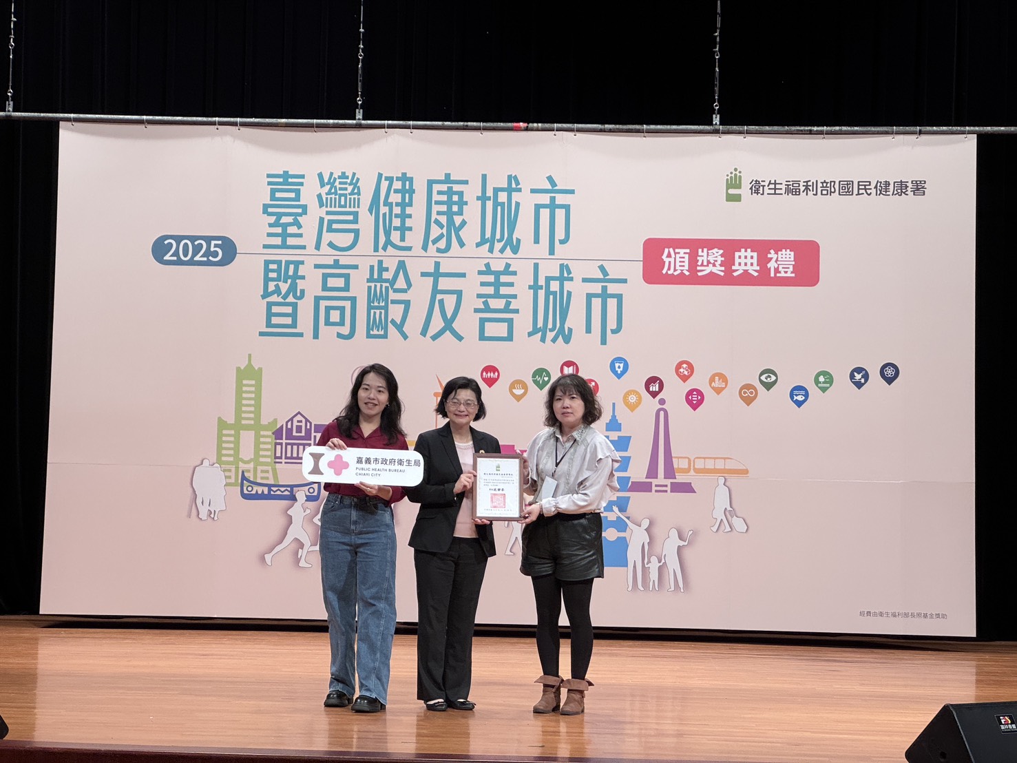 每年競爭相當激烈的「臺灣健康城市暨高齡友善城市獎」,由國健署主辦,共分為卓越獎、健康城市類、高齡友善城市類3大類,今年首次設立獎金獎勵制度,全國累計投稿470件作品(專案類325件、海報類145件),經評選後,共77個單位獲獎,獲獎率16.38%,極為競爭,嘉市府團隊運用永續思維導入市政,規劃各項促進健康城市與高齡友善業務創新作為,經由衛生局統籌、專家團隊輔導及各局處積極參與,共計獲獎4件,本市得獎作品如下:
