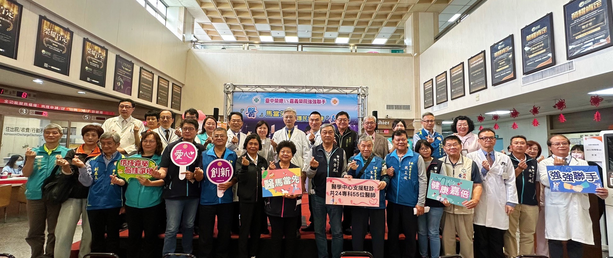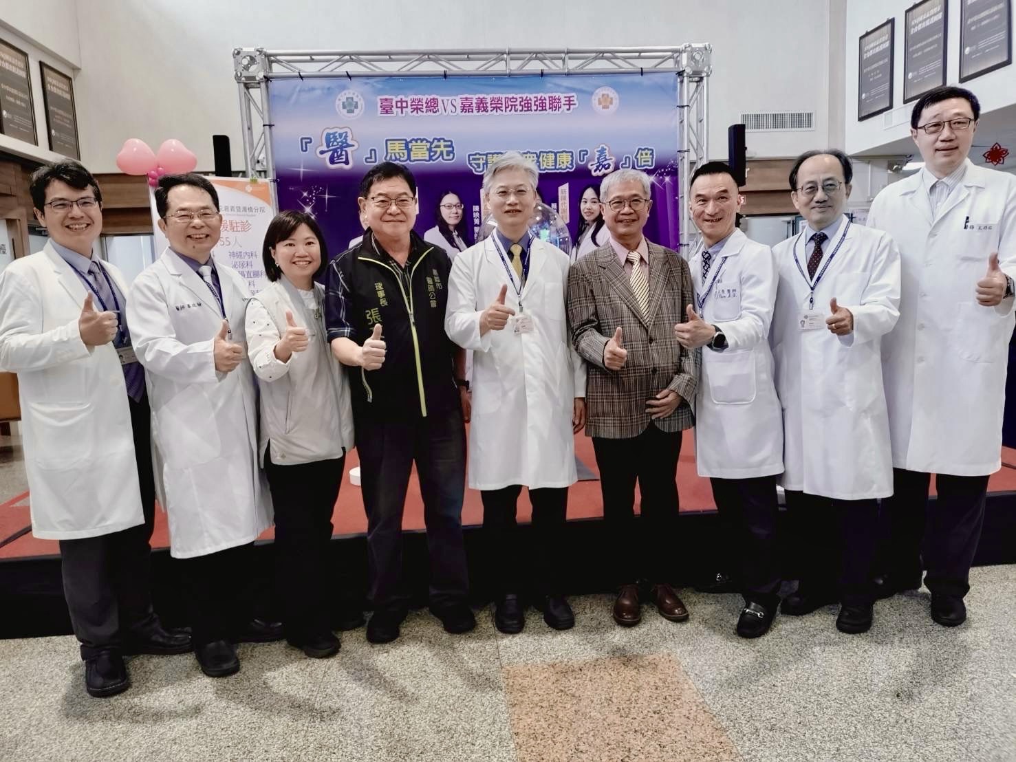 嘉義市政府衛生局廖育瑋局長代表黃敏惠市長及市府團隊於今(2)日參加臺中榮民之「強強聯手『醫』馬當先 健康『嘉』倍」記者會,總醫院傅雲慶總院長親自率隊駐診嘉義