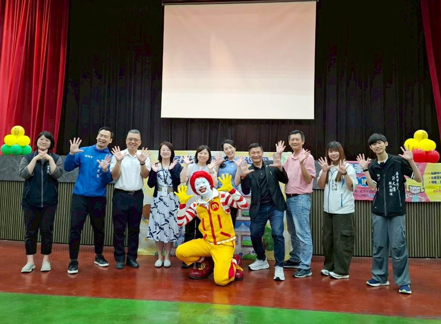 兒童節將至,今(30)日嘉義市政府衛生局攜手「麥當勞叔叔之家慈善基金會」於興嘉國小辦理《一起洗手趣》校園洗手宣導活動記者會。衛生局廖育瑋局長、教育處黃媛楟副處長、興嘉國小查顯良校長及多位議員一起陪同麥當勞叔叔示範正確洗手五步驟「濕、搓、沖、捧、擦」及洗手五時機「吃東西前、接觸幼兒前、上廁所後、擤鼻涕後及看病前後」,透過生動活潑的洗手歌旋律及趣味問答,以寓教於樂的方式,加強學童正確洗手的觀念,從小建立良好衛生習慣,送給學童一份最好的兒童節禮物。