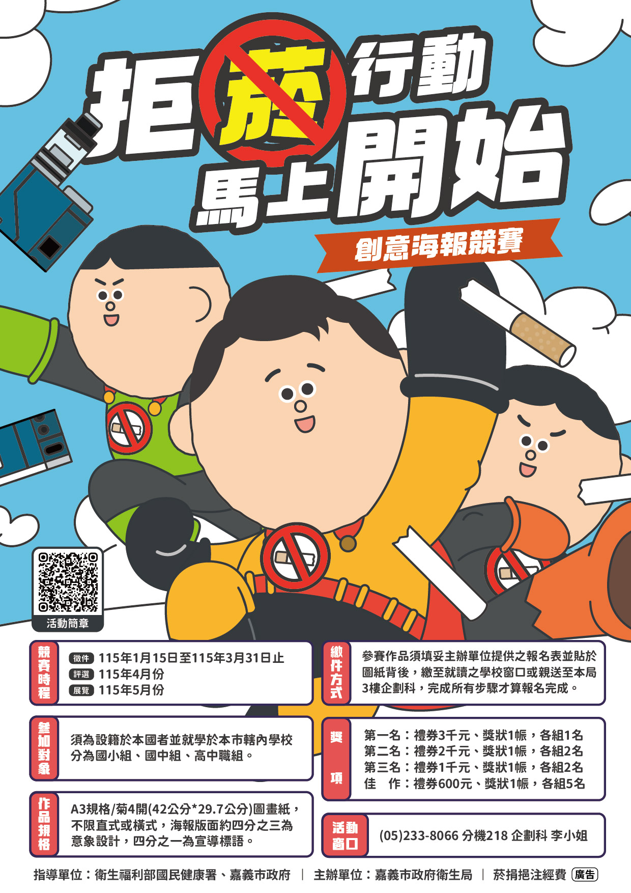 115年「拒菸行動,馬上開始!」菸害防制創意海報競賽